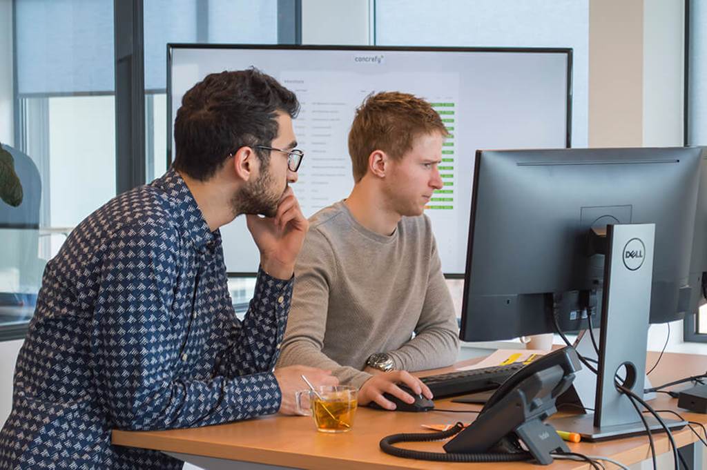 De start van Jeroen liep wat anders dan die van Mustafa. De afstudeeropdracht van Jeroen zat nog in de afrondende fase en dat traject heeft Jeroen eerst afgemaakt. Vervolgens heeft hij samen met zijn projectmanager John Verbeek geïnventariseerd waar zijn interesses liggen en wat zijn sterke kanten zijn. Met als resultaat, dat Jeroen samen met ontwikkelaar Jeffrey Haen, aan een uitdagend project voor een recyclingbedrijf heeft gewerkt.