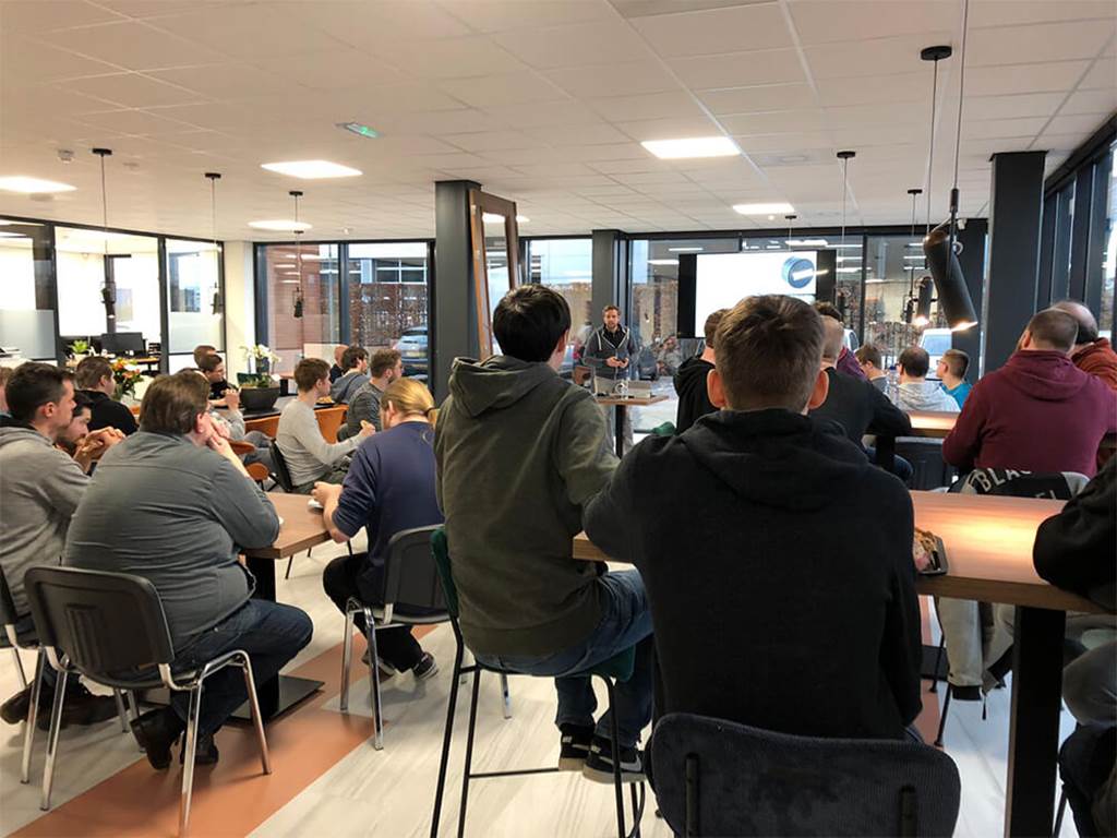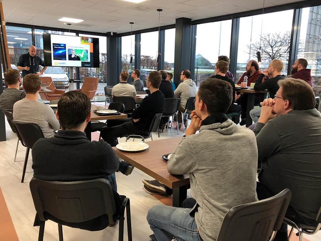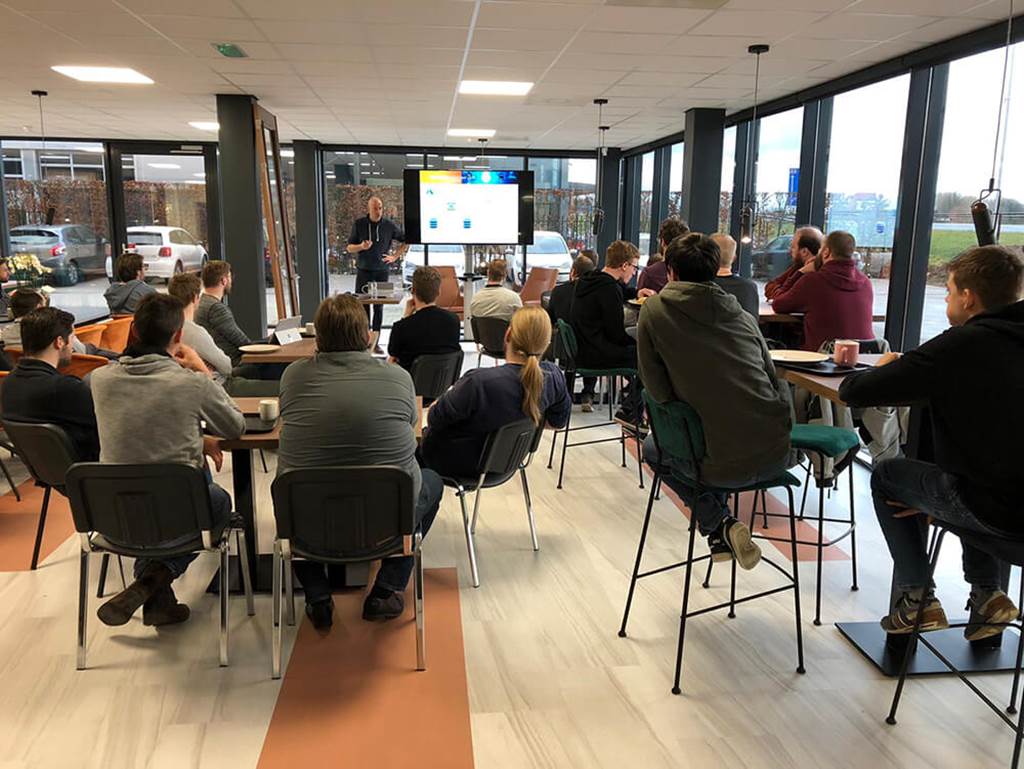 De collega’s van Covadis hebben zich in het restaurant verzameld voor een interne kennissessie. Het gaat om de eerste talk in het nieuwe onderkomen aan de Expeditieweg 6a. Dat maakt het al tot een bijzondere bijeenkomst. Daarbij gaat deze sessie niet alleen over de techniek achter Covadis software, maar ook over de beleving van de eindgebruiker. Zodoende vertelden leden van een ontwikkelteam meer over Asset Management 2.0. Een project dat deels tot stand kwam in het Innovatielab van Covadis.