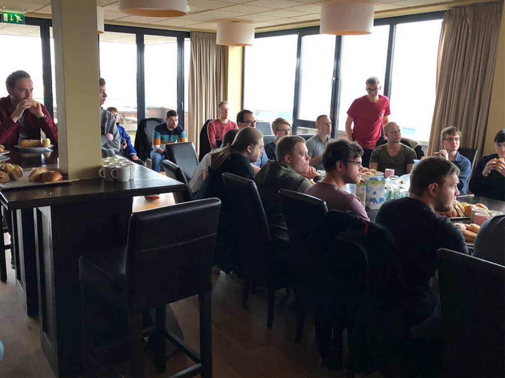 De bekende bar van Covadis is inmiddels volgelopen met verschillende collega’s. Zodra iedereen een plek heeft en een broodje vasthoudt, legt de architect meer uit over Cosmos DB. Wat is het en wat zijn de voordelen?