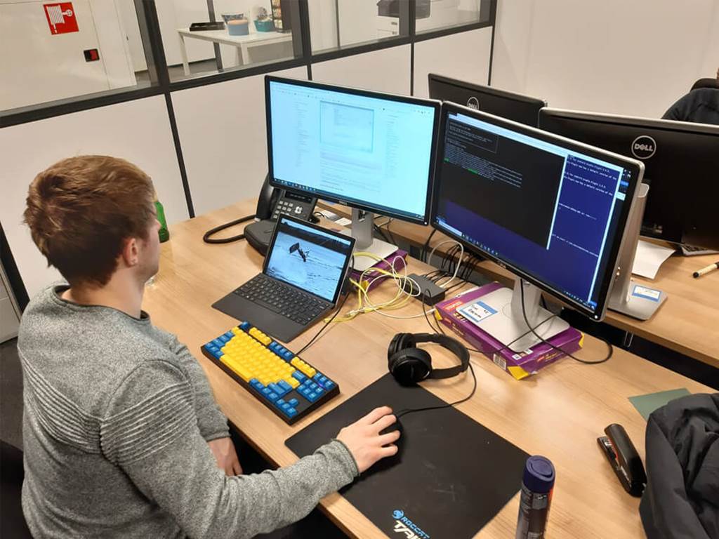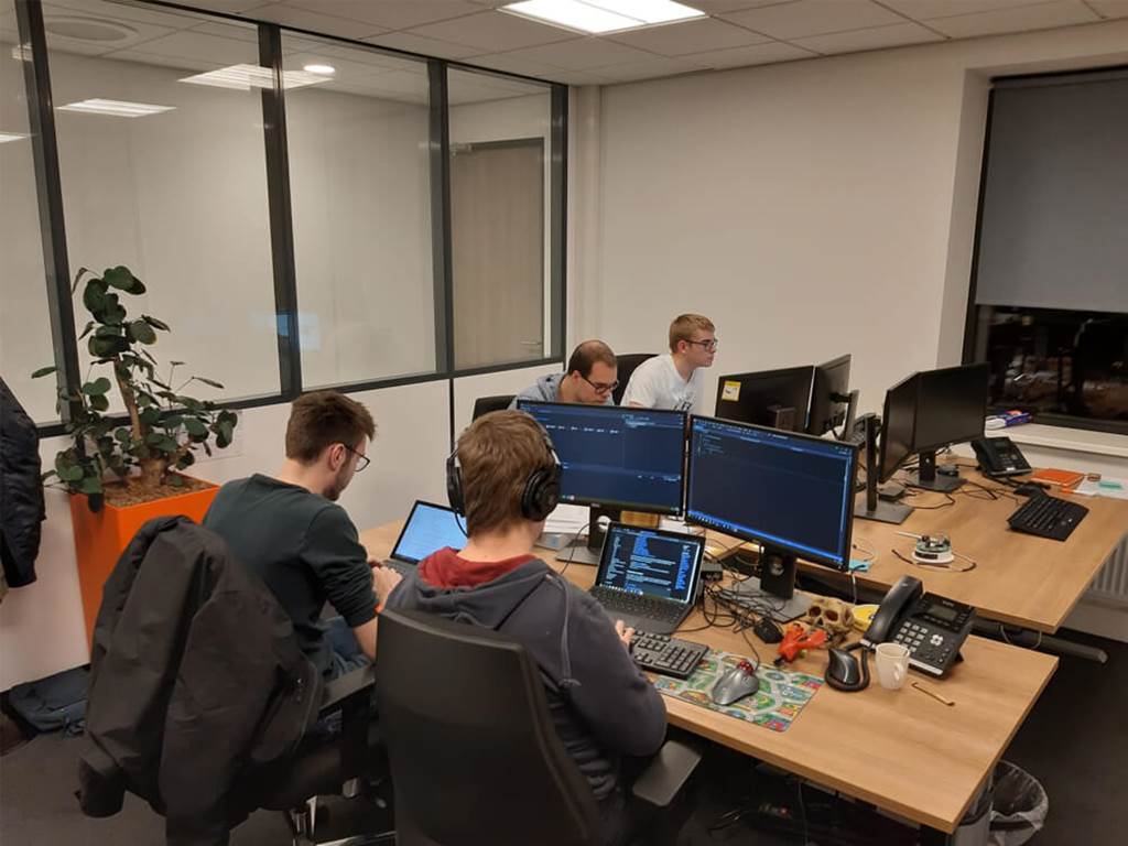 De collega’s van Covadis groeperen zich in de welbekende bar van het pand. De lokale pizzaboer bracht een bezoek aan de Transportweg om de techneuten van de nodige döner, pizza en shoarma te voorzien. Hierop vertrekken de ontwikkelaars naar hun bureaus.