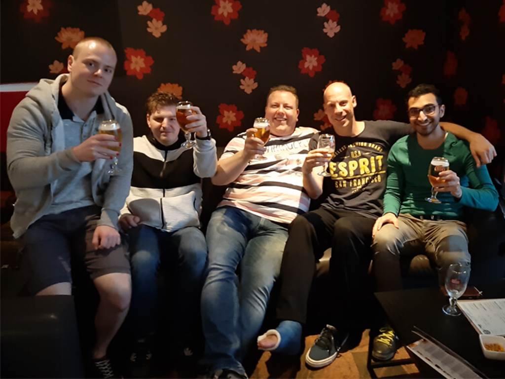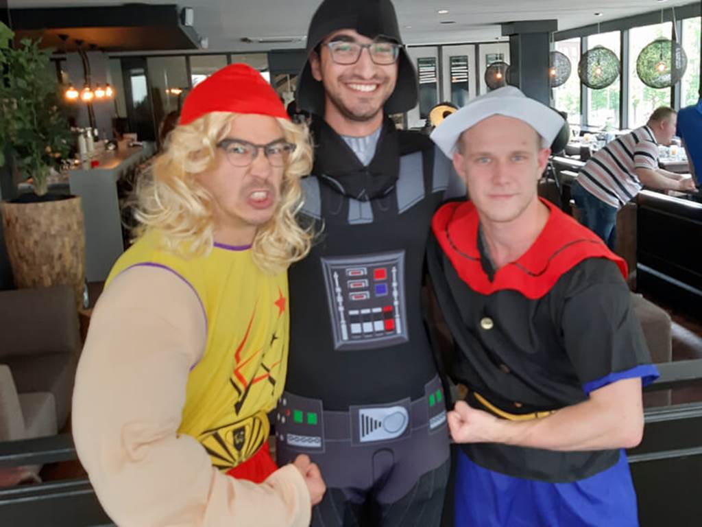 Het was niet alleen Antwerpen hè? Neen, de dag begon met een dwaalspoor voor de collega’s. Zij werden namelijk in Breda al de bus uitgeworpen. De dag begon met een escaperoom, gevolg door koffie met een kanonskogel van een appelgebak, kroketten, Big Mac’s in één hap, polonaises met onschuldige voorbijgangers, happen kaneel, Ierse foto’s, sponsenloopjes en ingewikkelde ontwikkelaars. Hoewel het er de niet de tijd voor het jaar voor is, kunnen in Kielegat enkele schaamteloze collega’s het niet laten om zich te verkleden als Squirtle, Popeye, Hulk Hogan, Darth Vader of Vegeta.