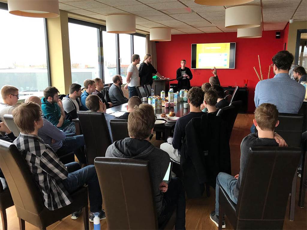 Team TopFloor, zoals de presenterende ploeg zich noemt, begint de talk met een introductie. Om het ijs te breken geven ze aan dat er na de kennissessie niet alleen tijd is voor vragen, maar ook voor applaus. Hierop steken ze van wal over hoe zij bij dit onderwerp gekomen zijn.
