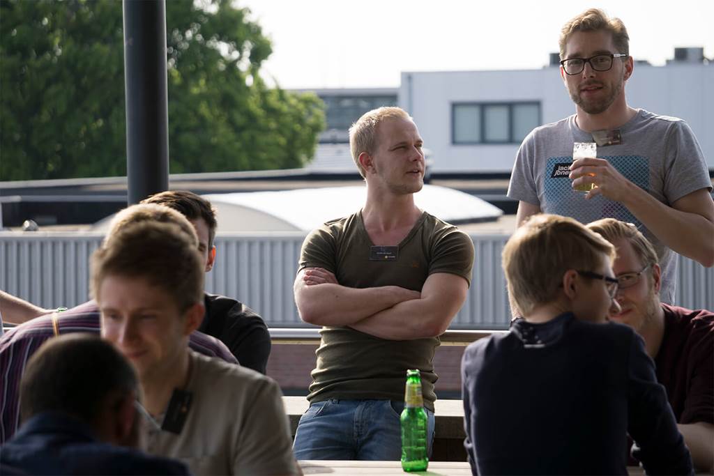 “Het waren leuke sessies”, meldt een bezoeker naderhand. De ‘afterparty’ is inmiddels begonnen. Tientallen softwareliefhebbers hebben zich in de bar verzameld om na te praten onder het genot van een al dan niet alcoholische versnapering. De zon is onder, maar de buitentemperatuur is nog erg aangenaam voor de tijd van het jaar. Net als de sfeer in de bar.