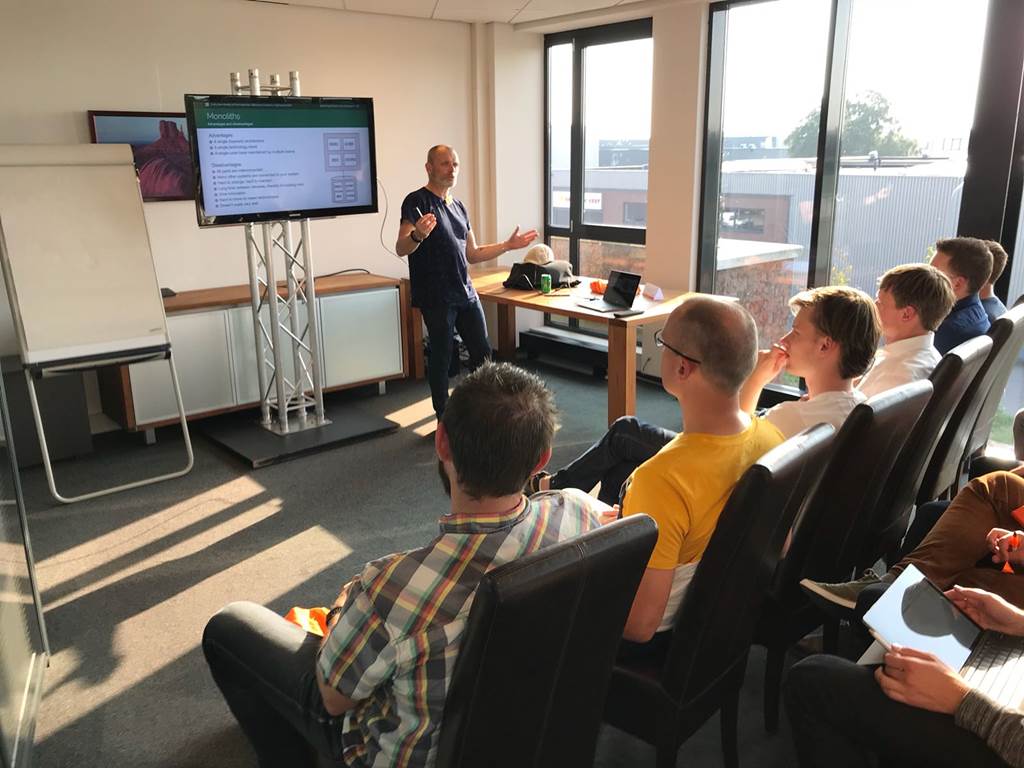 “De sessie liep dan ook behoorlijk uit”, zo vertelt de architect. “Hoogendoorn is een energieke spreker die graag uitgebreid antwoord geeft op vragen en niet moeilijk doet over extra toelichting. Hij heeft het beste met zijn publiek voor. Want het is erg knap wat hij in zo’n sessie doet. Hij simplificeert één van de moeilijkste onderwerpen die er is. De werking van Microservices is geen makkelijke stof, er zit een hele wereld achter. Hoogendoorn wist knap de basics uit te leggen aan de nieuwkomers in Microservices en gaf een dynamische les. De basis werd grondig uitgelegd en het prikkelt de nieuwsgierigheid om de grote wereld van Microservices verder te verkennen. Hoogendoorn beklom een heuvel in Microservices, maar er ligt nog een gebergte achter. Wat deze sessie zo goed maakt, is dat voor zowel nieuwkomers als ervaren techneuten het een enerverende aangelegenheid is.”