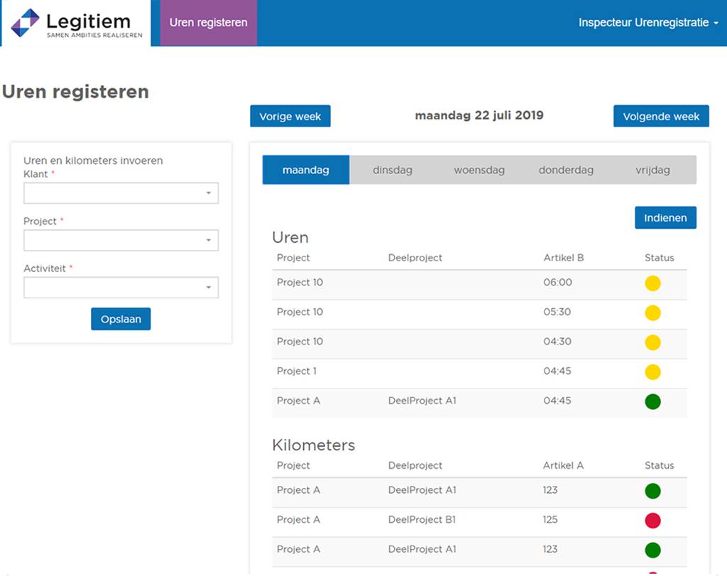 Op de oude wijze vulden de inspecteurs aan het einde van de dag hun uren en ritten in. Denk bijvoorbeeld aan vier uur en tachtig kilometer. Deze stuurden ze dan, veelal via de mail of telefoon, door aan hun coördinator. De coördinator controleerde deze gegevens om ze vervolgens door te geven aan Legitiem. Hier voerde een andere collega ze handmatig in.